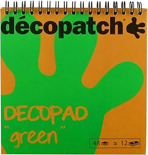Décopatch BLOC050 - Un bloc à spirale de 48 feuilles de papier imprimé 15x15 cm, motifs assortis (12 designs x 4 feuilles), Vert
