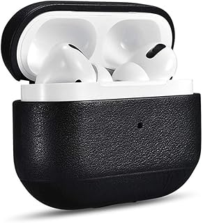 ICARER Cuir Coque pour AirPods Pro (3ème Gén 2019), Soft Première qualité Étui Housse Cuir Véritable Antichoc Anti-Rayures Protection Coque avec Témoin LED Visible,Supporte la Charge sans Fil (Noir)