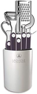 CONÇUS POUR DURER, FACILES D'ENTRETIEN : Râpez, zestez, coupez, façonnez, décapsulez et plus encore avec des outils adaptés et solides. Avec un manche bi matière carbone/acier inoxydable revêtement titanium et une partie ustensile en acier inoxydable trempé, les six accessoires ont été conçus pour durer. Très faciles d'entretien, ils sont compatibles avec un passage au lave-vaisselle. ACIER INOXYDABLE ET ABS BI-INJECTION : Conçu à partir de matières premières haut de gamme, cet ustensile Laguiole Évolution est équipé d'un manche ergonomique en ABS bi-injection pour une légèreté confortable et une grande solidité. La partie métallique est en acier inox trempé pleine soie imperméable aux attaques corrosives.