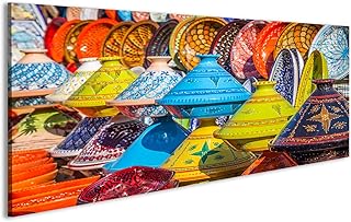 islandburner Tableau Tableaux sur Toile Tajines au marché, Marrakech, Maroc Images Impression Cadeau DKI