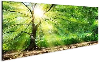 islandburner Tableau Tableaux sur Toile bel Arbre avec Le Soleil dans la forêt Images Impression Cadeau DWT