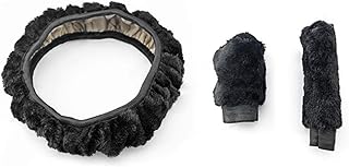 3 Pcs Couverture de Volant de Voiture Housse de Volant d'hiver Universelle Couverture de Volant de Voiture Fourrure Housse de Volant avec Couvercle de Frein à Main Couverture de Changement de Vitesse