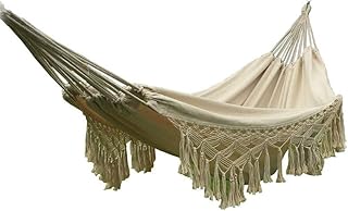 THZCMY Hamac de Luxe a Franges au Crochet 2-Person tissée Main, Coton Bio Naturel Charge Max 300KG Economie l'espace Voyage Chambre Jardin Camping Barbecue