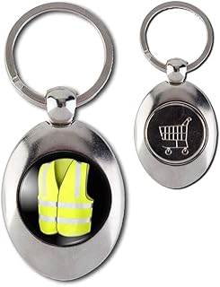 Reloadshop Porte-Clés Acier Ovale Jeton Caddie Gilet Jaune Soutien Mouvement Gilets Jaunes France 2018 Fond Noir