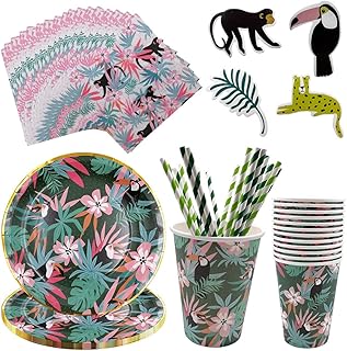 One tropical greenery Balloon; Wild One party, Jungle Theme, Birthday Party Balloons, Luau Balloons; Island Party, Gender Reveal Baby Shower StoykoTs (2,906) $1.25 Tropical Jungle Confetti, Luau Confetti , Pink & Green Luau Party Decoration, Monstera Confetti, Jungle Party, Jungle Theme, Dinosaur Theme JustwreathDesigns (651) $6.95 DYLIVeS Safari Jungle Birthday Party Supplies Tableware, Zoo Theme Gold Foil Forest Animal Party Decorations Packs Baby Shower - Disposable Plates, Cups, Napkins, Cutlery (Serves 24, Total 144pcs) 4.6 (47) $2199 Save 5% with coupon FREE delivery Sat, Dec 17 on $25 of items shipped by Amazon Or fastest delivery Fri, Dec 16 Arrives before Christmas