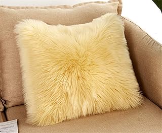 RAILONCH Taie d'oreiller, Housse de Coussin Canapé Fausse Fourrure Decoration, Super Doux en Peluche Housse de Coussin Salon Canapé Chambre à Coucher (Jaune Clair,40 x 40cm)