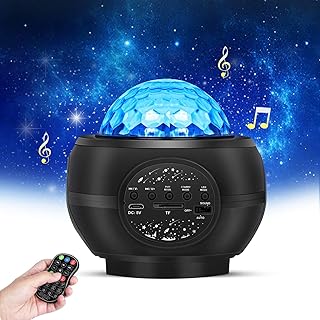 VOKSUN Projecteur LED étoile, Lampe de Projection Vague de l'Eau, Veilleuse Enfant Lampe de Chevet Nuit, Musique Lumière Réglable Bluetooth/USB avec Télécommande Minuterie, pour Fête/Décoration/Cadeau