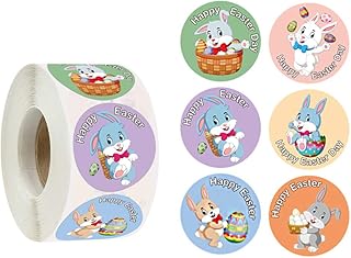 AIEX 500pcs 1 Rouleau Rouleau d'Autocollants de Pâques Décorations Oeufs Lapin Assortis Autocollants de Thème de Pâques Faveurs de Fête de Pâques pour Les Enfants 8 Modèles Différents