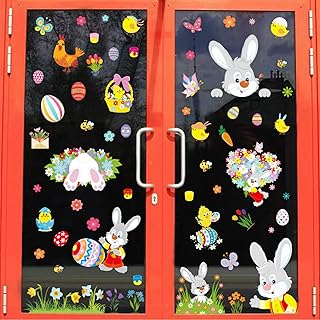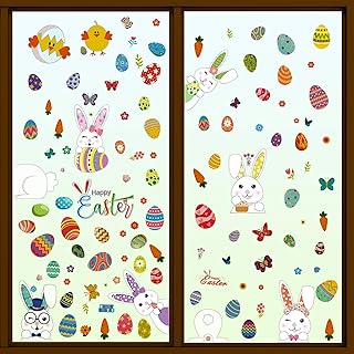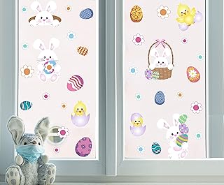 Autocollants de Fenêtre de Pâques,Coloré Fenêtre Autocollant de Lapin,Stickers Oeuf de Pâques,Amovibles Decalcomanie Pâques pour Réfrigérateur Porte Verre de Centre Commercial Maison Fête Mur Décor