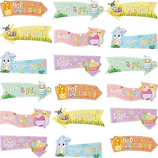 18 Pcs Flèches de Chasse Pâques Panneaux de Trottoir de Cour Pâques Panneaux de Pieu Cour Lapin d'Oeuf Pâques en Plein Air Cartes de Directions avec Motifs de Lapin pour Fête Décor Pelouse
